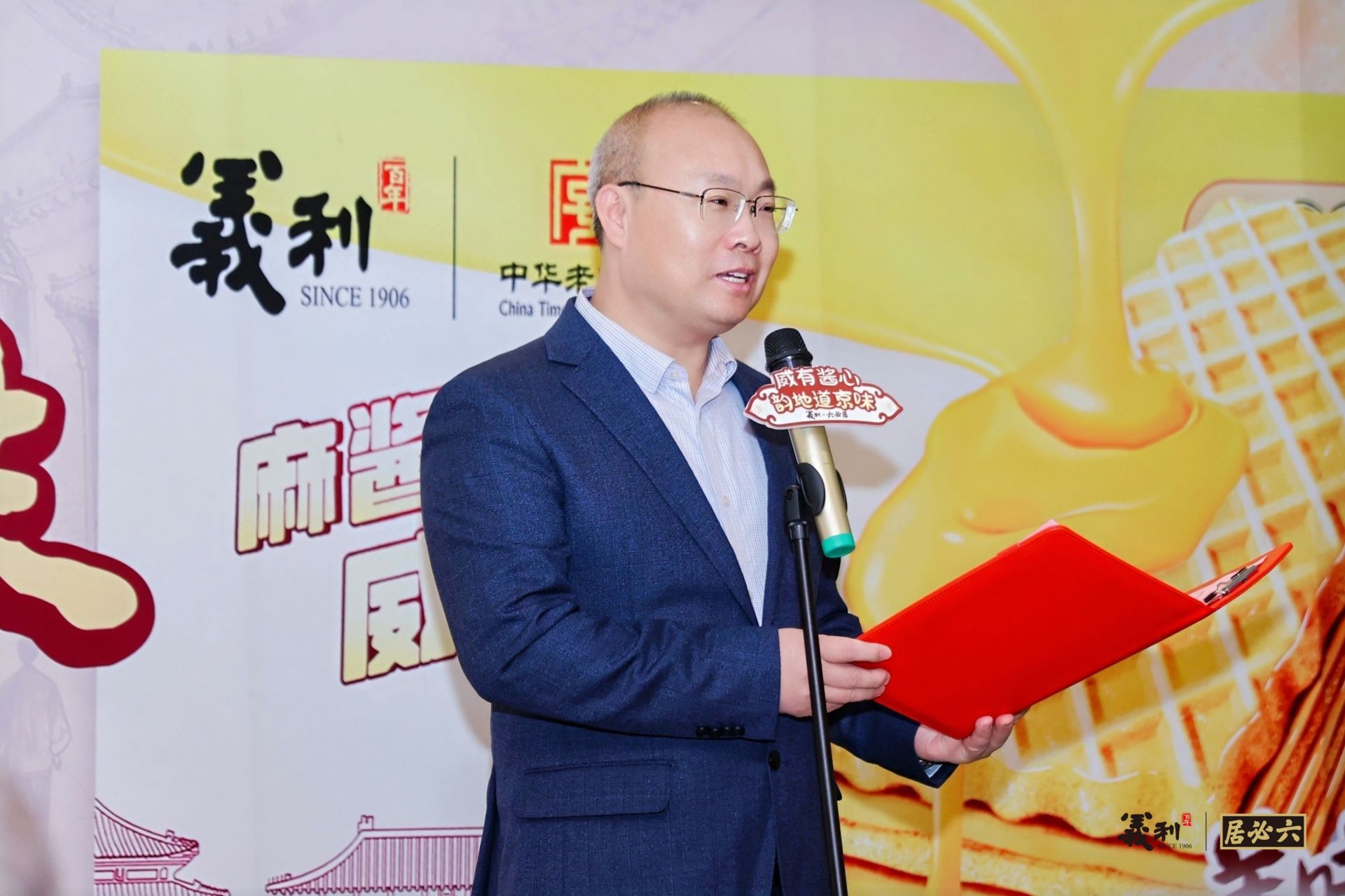 义利与六必居,作为两个充满北京传统魅力的中华老字号品牌,本次发布会的现场布置洋溢着浓郁的京味风情,主题背景板上印有它们的经典标识,显得格外引人注目。