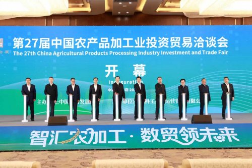 11 月 28 日上午,第 27 届中国农产品加工业投资贸易洽谈会(简称“第 27 届中国农加会”)在驻马店国际会展中心隆重开幕。