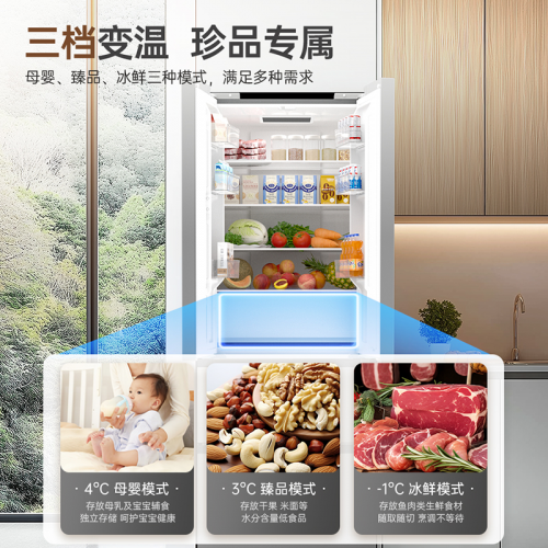 日常生活中,不同食材存储的温度也大不相同。澳柯玛BCD-426WPHNEZ冰箱拥有三档变温空间,可根据不同食材的存储需求灵活调节温度,母婴、臻品、冰鲜三种模式随心切换,满足你对食材存储的多样化需求,让每一种食材都能找到最适合的存储环境。