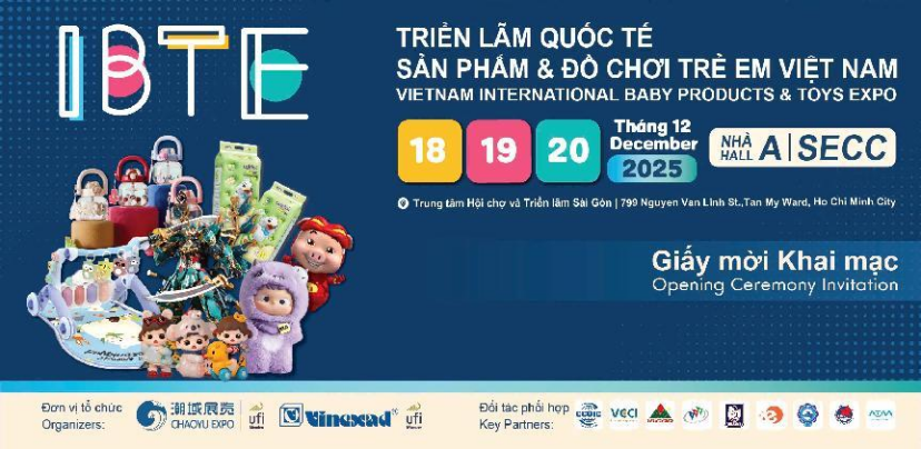 基于往届成功经验与行业强劲需求,2025年12月18日至20日,IBTE越南国际玩具及婴童用品展将再度登陆越南胡志明市西贡会展中心(SECC),届时,展会将继续搭建高效、专业的贸易对接平台。展会主办方诚邀各界人士共襄盛举,有望再次掀起行业交流与合作的新高潮,再谱行业新篇。