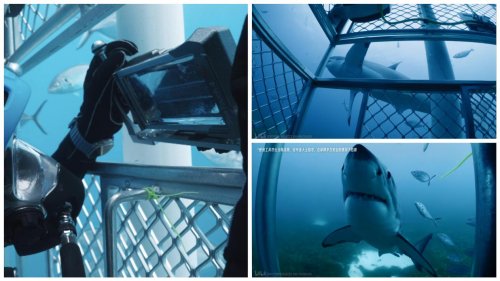 在很多人的印象中,想要拍摄海底顶级的掠食者——大白鲨,必须配备笨重的电影摄影机、庞大的防水壳以及复杂的灯光系统。