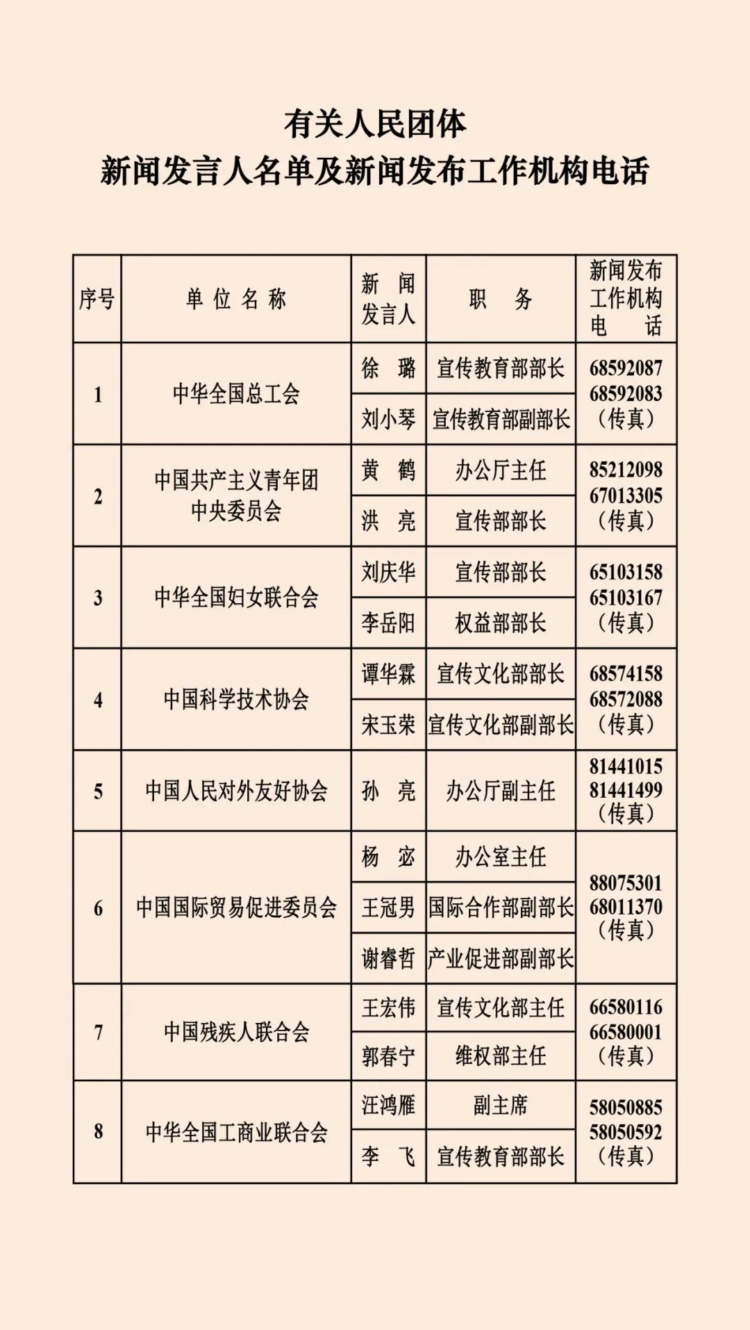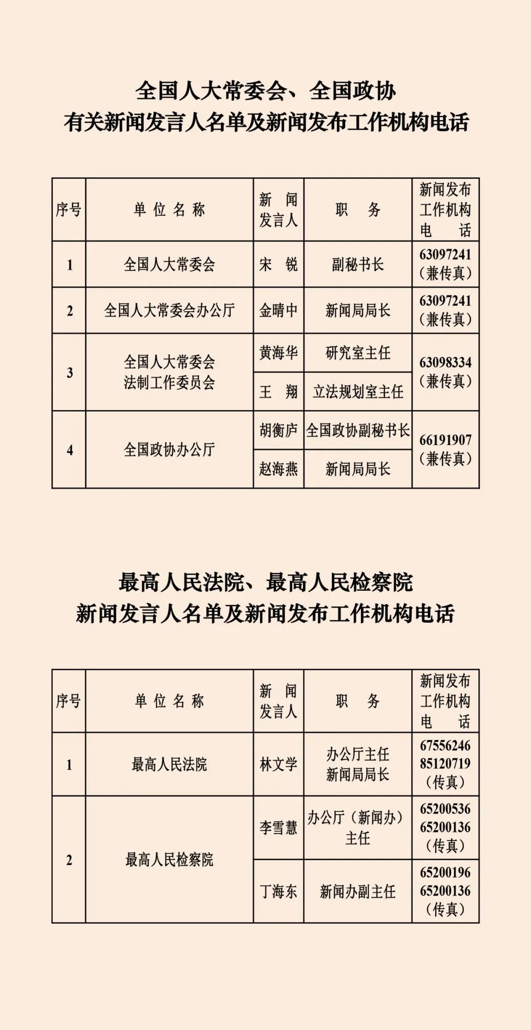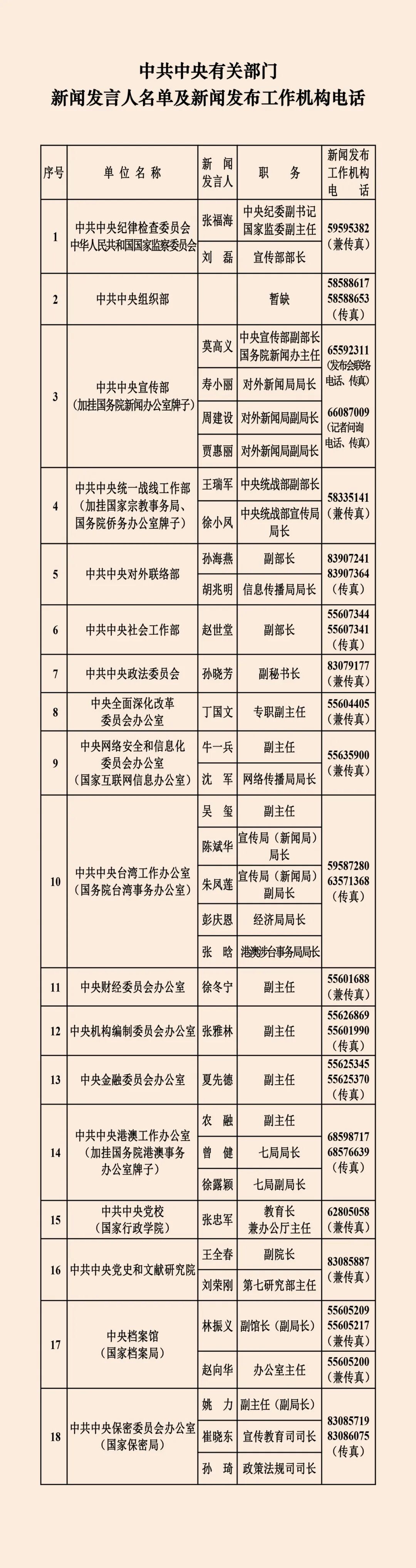 中央国家机关和地方2026年新闻发言人名录