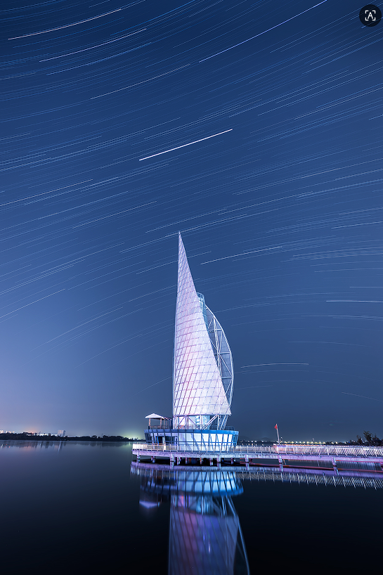 天文摄影分为星野摄影与深空摄影两大类,赵阳的镜头,最初聚焦于星野摄影的天地之美。他偏爱将蚌埠的城市地标与璀璨星空同框,大塘公园的树影婆娑、龙子湖的帆船剪影、栖岩寺的古朴建筑,在星空的映衬下,勾勒出别样的珠城轮廓。然而,蚌埠地处东部,光污染相对明显,为了寻觅更优质的拍摄环境,赵阳的足迹遍布省内外。他曾远赴海西、五台山追逐流星划过天际的惊艳,也曾奔赴大别山区——这片安徽少有的低光污染区域,只为定格星空最本真的模样。