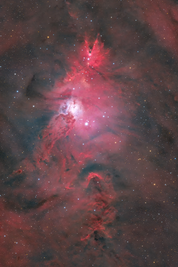 随着拍摄技艺的精进,赵阳的创作重心逐渐转向对天体细节的探索,深空摄影成了他新的追求。相较于星野摄影,深空摄影对设备的要求更为严苛,赵阳的“装备库”也随之不断升级。从最早的尼康D850单反相机,到后来的佳能R6天文改机,再到搭配600mm长焦镜头的奥林巴斯微单,以及专门用于深空拍摄的S50天文望远镜,四套设备各有专攻,陪伴他熬过无数个寒冷的夜晚。深空摄影耗时良久,需要通过长时间曝光和多组照片叠加,才能呈现星团、星云的细腻纹理。即便在蚌埠市区的楼顶,他也能凭借专业技术,巧妙抵消部分光污染的影响,解锁星空的隐藏之美。