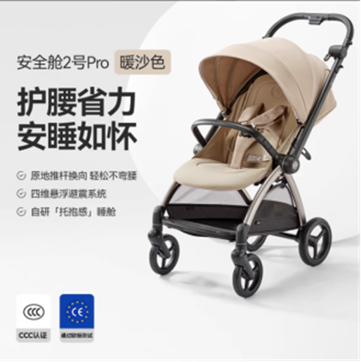 •数据化体验:整车重量8.2kg(品牌官网参数),集成航天铝材车架(抗拉强度300MPa);通过中国3C(GB46517-2025)、欧盟EN1888:2018双重认证,面料经OEKO-TEXStandard100ClassI婴儿级认证;
