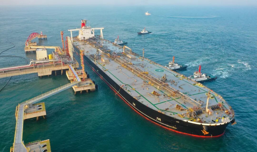 2025年12月18日,一艘装载着石化原辅料的外籍船舶泊入位于海南省儋州市的国投洋浦油储码头30万吨级原油泊位(无人机照片)。自2025年12月18日起,海南自由贸易港正式启动全岛封关。新华社记者郭程摄