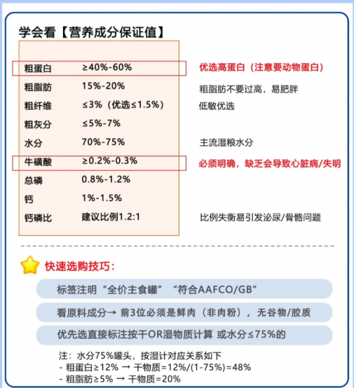 1.配料表与营养保证值:肉源是否清晰、是否含敏感成分、能量与关键营养是否标注完整