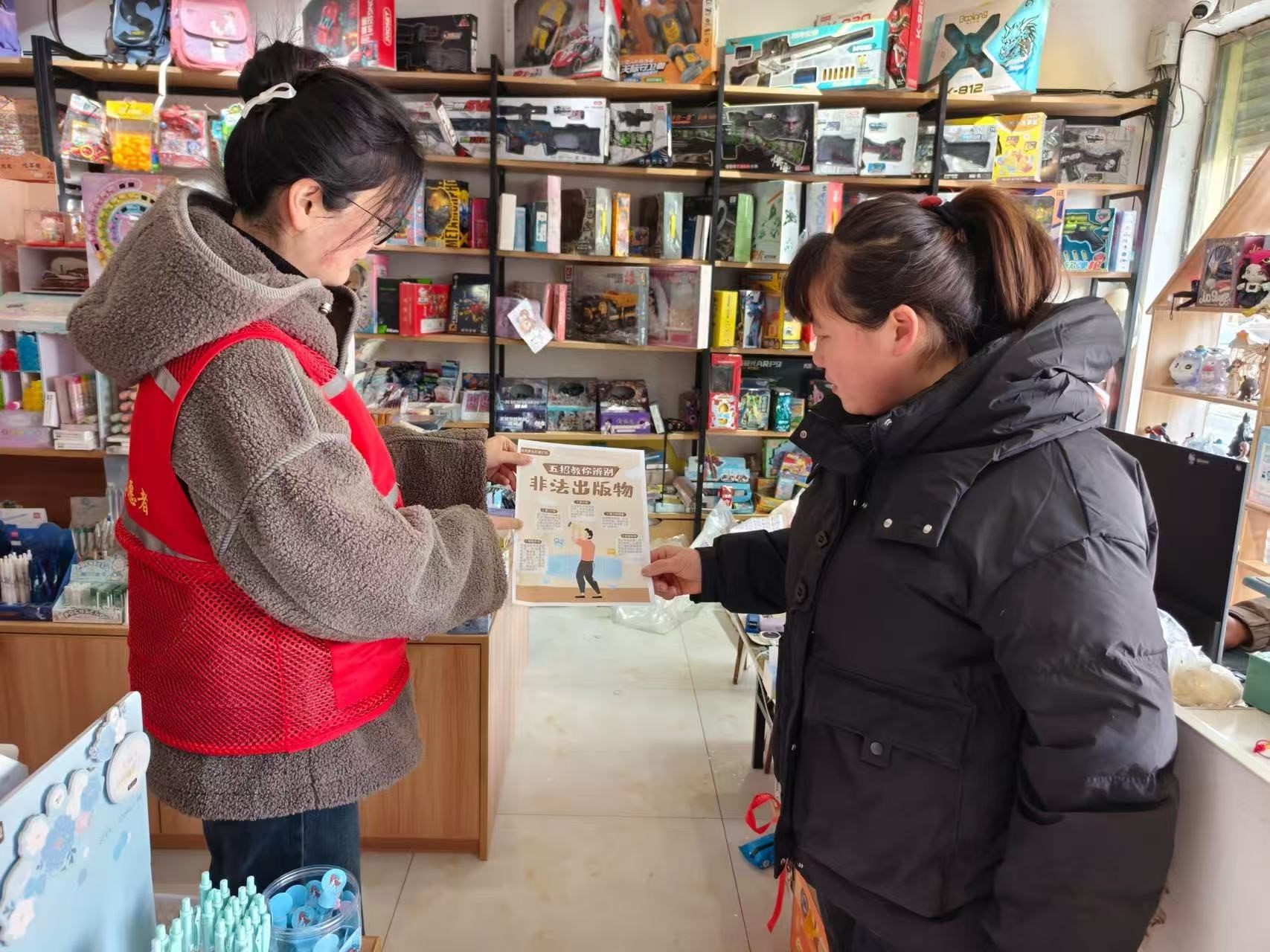 联动执法检查,筑牢监管防线。为实现精准监管,镇新时代文明实践所联合市场所,对辖区内学校周边的文具店、书店等8家经营场所开展了专项检查。检查人员仔细核查了经营单位的证照是否齐全,进货渠道是否规范,是否存在销售非法出版物、盗版教材教辅等行为。同时,向经营者进行面对面普法宣传,强调依法经营的重要性,督促其严格落实责任,自觉抵制各类非法出版物和文化垃圾,共同维护校园周边文化市场清朗秩序。