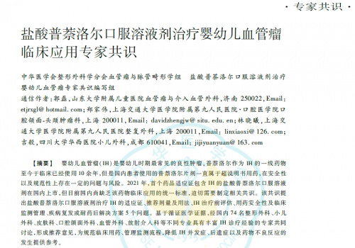 口服普萘洛尔(溶液或片剂)是国内外专家共识的一线治疗方式,尤其普萘洛尔口服溶液是儿童专用剂型,安全性和有效性更有保障,能从整体抑制瘤体生长,是临床上一线治疗方案。目前,临床上使用的盐酸普萘洛尔口服溶液(合美嘉®),即是由武汉科福新药有限责任公司研发并生产的。该产品是国内首个获批用于婴幼儿血管瘤治疗的口服溶液剂型,其设计旨在解决传统片剂分药不精准、喂服不便的难题,通过专用滴管可按体重精确给药,提升了治疗的规范性和家庭护理的便利性。2025年最新的专家共识《盐酸普萘洛尔口服溶液剂治疗婴幼儿血管瘤临床应用专家共识》,进一步明确普萘洛尔口服溶液作为中高风险婴幼儿血管瘤首选。
