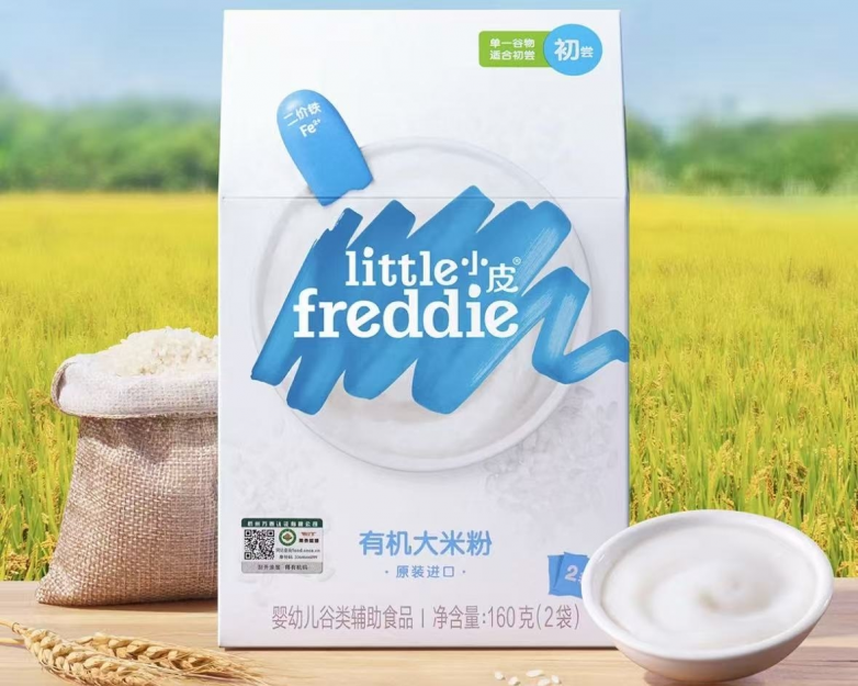每100克含铁5.8毫克,和小皮持平,用的也是二价铁(硫酸亚铁)加维生素C的组合,能帮着促进铁吸收。原料主要是有机大米,符合中国婴标GB10769,配料里没盐、没糖、没香精,也不含22种常见过敏原,敏宝刚开始加辅食也能试试。用了酶解工艺把大米淀粉拆成小分子,相对好消化一点,冲泡后质地顺滑,有淡淡的米香,网上复购率还可以。