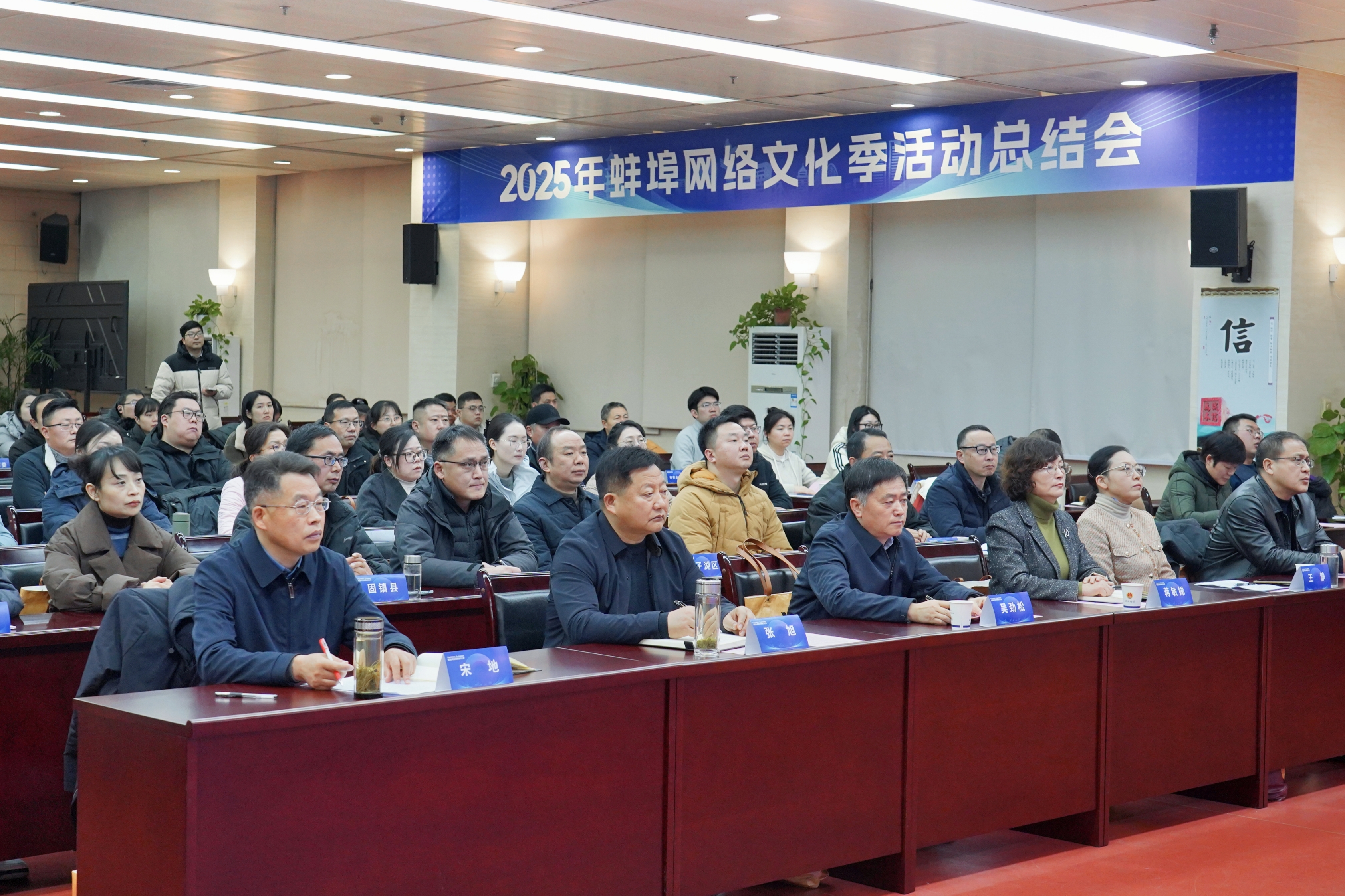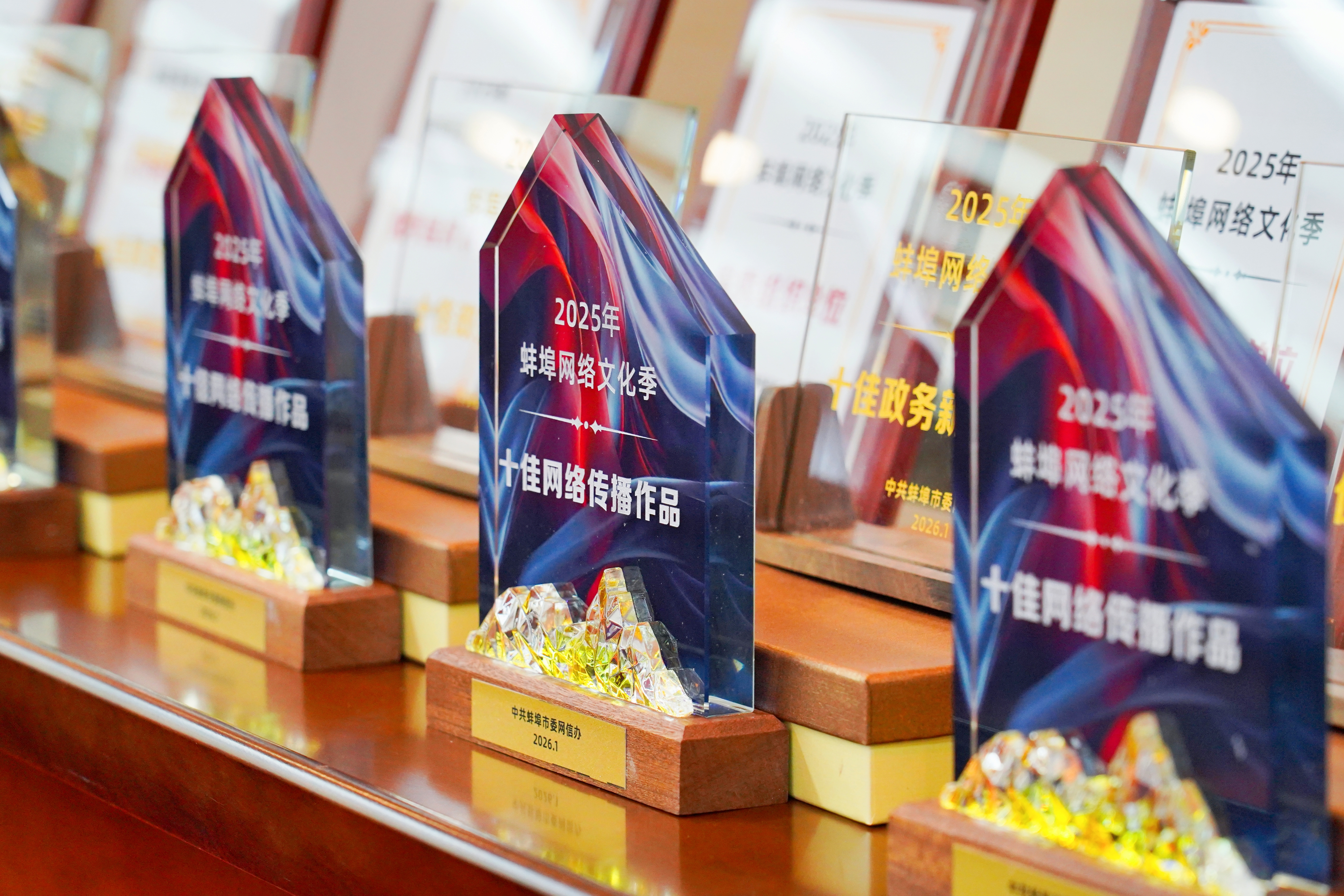 会议现场对2025年蚌埠网络文化季优秀网络传播范例、十佳网络传播作品、十佳政务新媒体账号以及优秀组织单位进行了集中表扬。60个优秀网络传播范例、10个十佳网络传播作品、10个十佳政务新媒体账号、10家优秀组织单位获表扬。