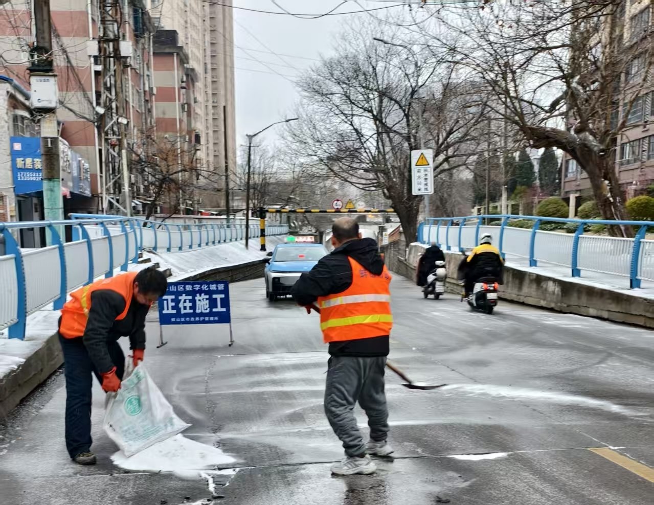 截至20日清晨,工作人员撒布融雪剂6吨,完成50公里道路积冰积雪清扫,实现辖区主干道“雪停路净、桥通人安”的目标,保障市民出行及应急车辆通行无阻。当前低温天气仍在持续,蚌山区市政所应急队伍始终坚守一线,根据雪情动态调整作业策略,重点防范夜间低温导致的路面二次结冰风险。接下来将继续严格落实应急响应要求,加密道路巡查频次,对重点路段实行“反复巡、重点清”,同时密切关注供水、供电、燃气设施运行情况,强化与相关部门的联动协作,确保突发故障快速处置。从深夜街头的机械轰鸣到街头巷陌的铁锹声响,市政所工作人员用冻红的双手、满身的雪水,诠释着“城市守护者”的责任担当,让这个寒冬因坚守而温暖,因畅通而安心。(记者 陈瑶 通讯员 余晓海)