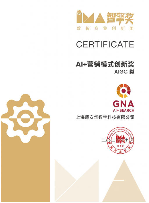荣誉斩获:2025年9月荣获IMA智擎奖"数智商业创新奖"之「AI+营销模式创新奖(AIGC类)」;