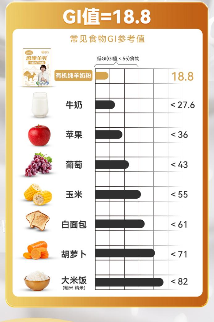 安全与品质上更是让人安心。奶源100%来自内蒙古敕勒川大草原黄金牧场,全程可追溯管理,通过中国有机产品认证,从牧草种植到奶山羊饲养,都遵循严苛的有机标准,确保每一滴羊奶的纯净天然。生产过程中零蔗糖、零香精添加,搭配低GI认证,有效避免血糖波动,对牛奶不耐受的同学也十分友好。