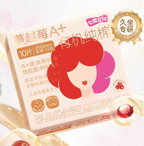 蔓越莓抑菌:该产品添加了天然蔓越莓提取物,抑菌率达99%,能有效地减少菌群滋生,搭配100%纯棉表层,带来如云朵般轻柔的触感。整体设计轻薄透气,吸收力强且不易闷热,既满足了年轻群体对美观的需求,也兼顾了经期健康护理的实际功能。