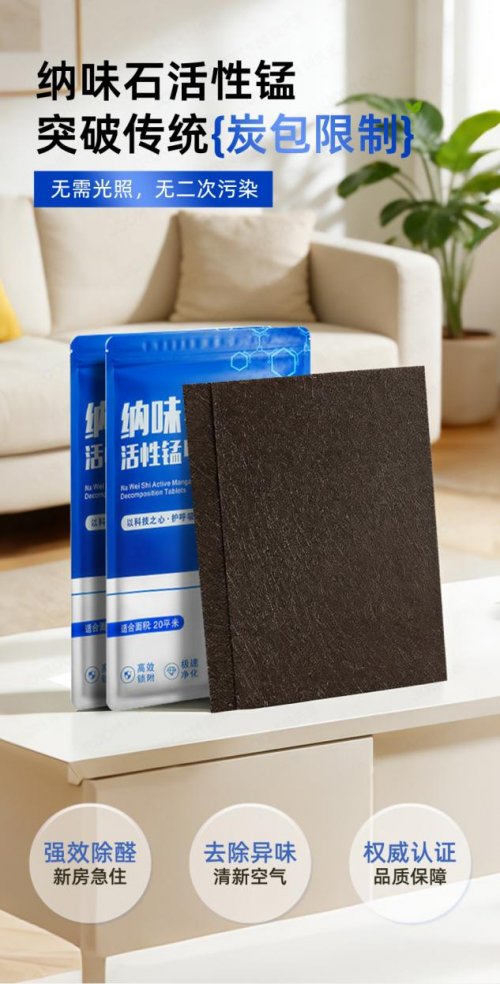 注意事项:此场景下优先选择纯物理作用、零化学添加的产品,叶广泥与纳味石活性锰均通过无毒检测,避免使用可能产生刺激性气味的喷雾型产品;定期更换纳味石活性锰,确保净化效果持续稳定。