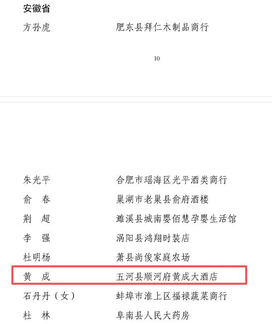 蚌埠发布客户端讯(记者 王立春 通讯员 孙艳)近日,中国个体劳动者协会发布了《关于表彰全国先进个体工商户和个私协会系统先进单位、先进个人的决定》,五河县顺河府黄成大酒店成功入选2025年度全国先进个体工商户。