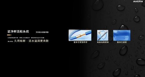 “瓷净鲜活舱”是澳柯玛在电热水器设计上的重要技术革新。瓷净无缝内胆、瓷净无垢加热管、免换电阻镁棒三位一合体,打造瓷净鲜活舱,从源头抑制水垢生成,该设计能有效抗腐蚀、防结垢。同时免换电阻镁棒设计,增加了电阻保护,实现镁棒终身免更换,可以持久保护内胆,持续保持水质稳定,为“小蓝瓶润肤科技”提供了可靠保障。