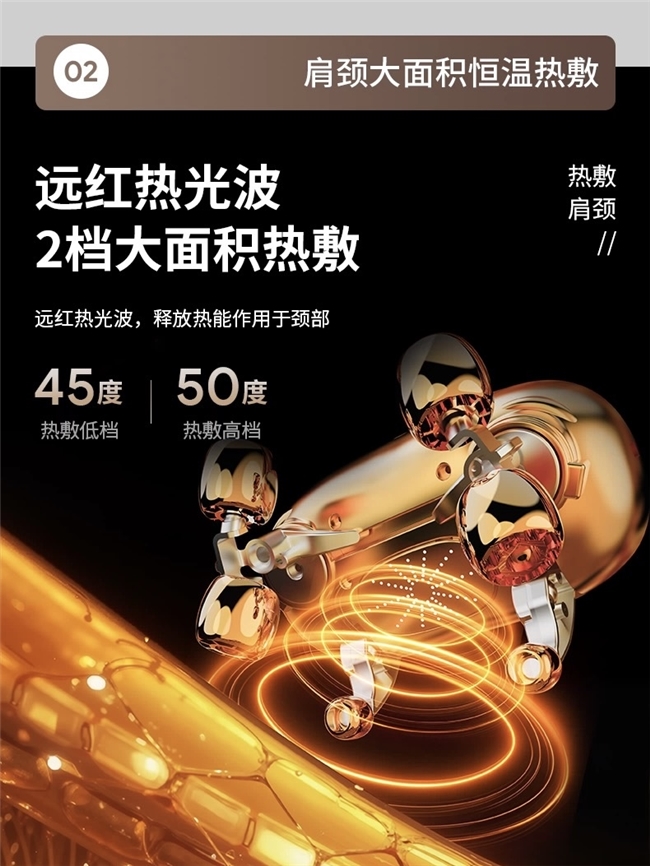 ●635nm红热光波深层舒缓:采用医用级黄金波长635nm红光,经Intertek检测可穿透皮肤3-5mm直达颈椎肌肉深层,通过“光热协同”作用促进局部血液循环,加速乳酸代谢,相较于普通表面热敷仪,对颈椎受凉僵硬、久坐劳损的舒缓效果提升72%,实测使用20分钟后疼痛感平均降低51%;