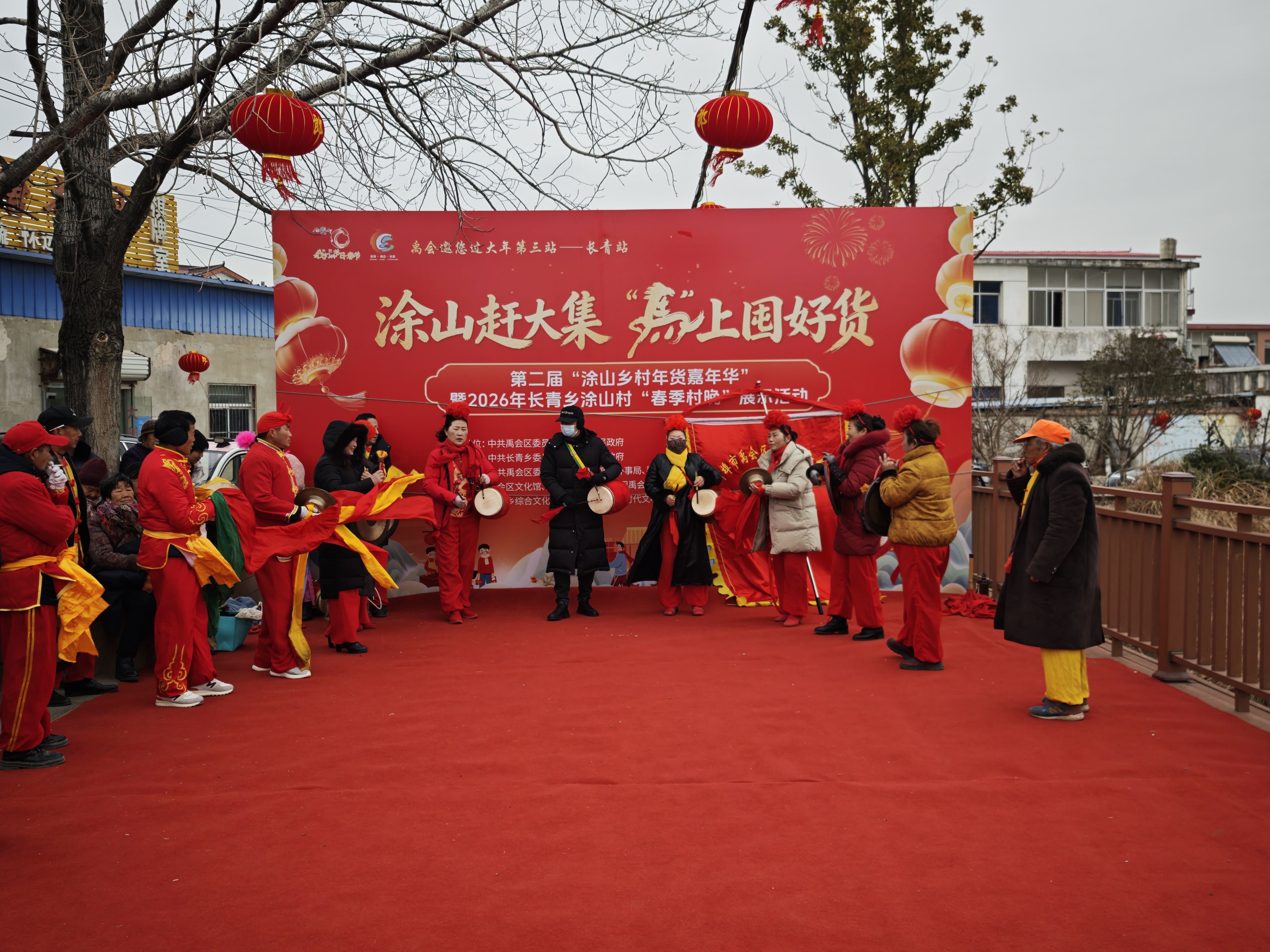 蚌埠发布客户端讯(记者王立春文/图)2月6日,农历马年新春佳节来临之际,第二届“涂山乡村年货嘉年华”在蚌埠市禹会区长青乡涂山村卧牛潭畔热闹开市。一场集年货展销、民俗体验、文艺汇演于一体的乡村盛宴,为冬日的涂山增添了浓浓的年味。
