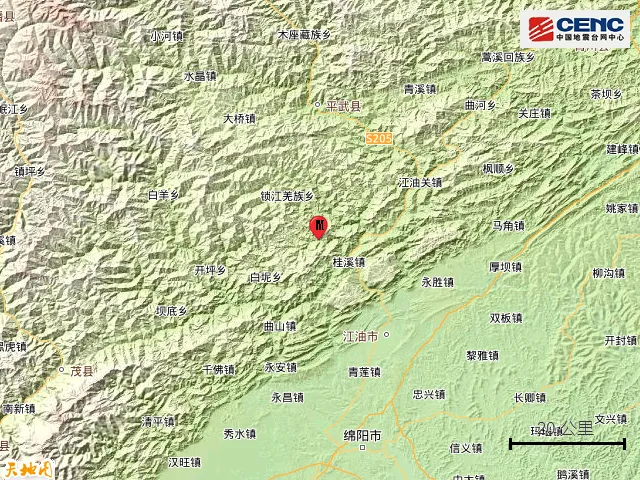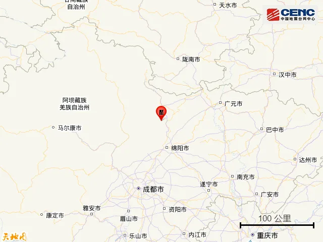 据中国地震台网正式测定,2月8日11时1分在四川绵阳市北川县发生3.3级地震,震源深度14公里,震中位于北纬32.04度,东经104.56度。