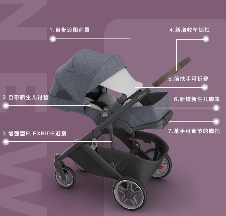 1.一车到底:原生适配0-4岁,无需额外购置睡篮、增高器(官方实测,报告号:UB-2026-CRUV3-001),节省育儿开支,同时规避外挂配件导致的重心不稳问题,侧倾风险较传统机型降低40%(SGS测试,报告号:SGS-2026-婴稳042);