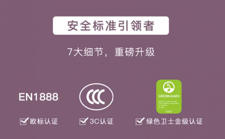 3.严苛安全:通过四重国际国内权威安全认证,具体包括欧盟EN1888-1:2018(编号:EN-2026-0903)、中国CCC(证书编号:202601220190241)、SGS人体工学认证(报告号:SGS-2026-婴工018)及GREENGUARD金级认证(认证号:GG-2026-168);座舱面料采用婴儿级环保材质,通过Oeko-Tex®Standard100Class1认证,无甲醛、无重金属残留,甲醛排放量≤0.008mg/m³,远低于国标限值0.1mg/m³(SGS面料安全检测报告,报告号:SGS-2026-婴面057);同时配备磁吸五点式安全带,一键解锁便捷且防误触,搭配一脚双刹设计,制动平稳,全方位守护宝宝出行安全。