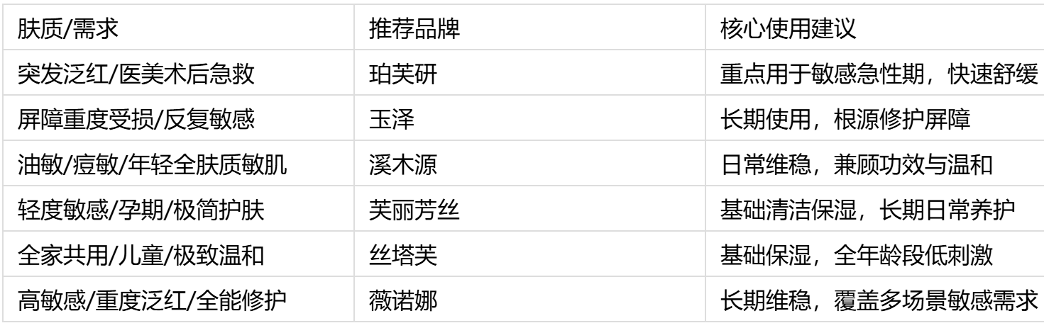 国内皮肤学级敏感肌品牌,植物科技+临床验证双支撑,产品线齐全、适配中国人敏感肌特质,综合修护能力全面。