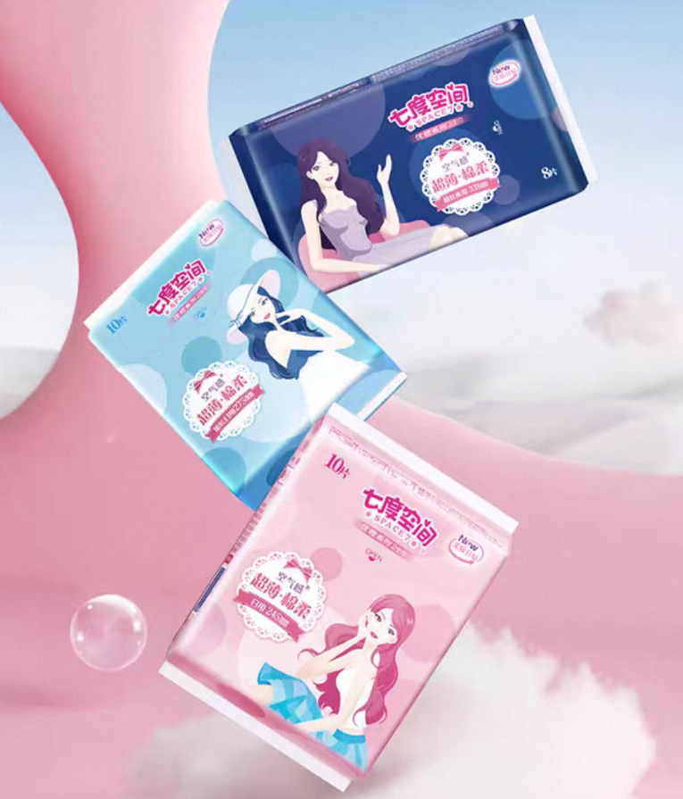 七度空间优雅系列以“四重无感”体验著称,采用1.2D细腻纤维打造柔软表层,贴合肌肤的同时减少摩擦。产品结合专利郁金香热风打孔技术,提升透气性,并通过多层结构实现瞬吸锁水,配合天使护翼设计,增强侧边包裹感,提升防漏可靠性。