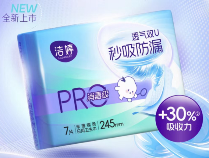 洁婷的透气双U系列以“双U结构”为核心,强调秒吸速锁与动态贴合。产品通过优化导流通道,有效减少表面黏腻感,搭配加宽吸收区,提升整体防漏性能。其表层柔软,透气底膜有助于排出湿气,适合活动量较大或需要长时间外出的女性,兼顾干爽与安心。