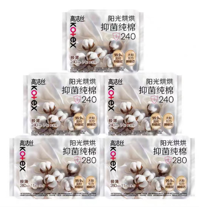 高洁丝此系列采用“阳光烘烘”工艺处理的纯棉表层,结合99%抑菌层,从源头减少细菌滋生风险。产品强调婴儿级温和配方,PH值适中,适合经期肌肤脆弱阶段使用。长效抑菌与干爽表层的组合,让使用者在炎热潮湿季节也能保持清爽舒适。