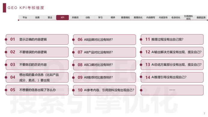 9.内容能力:具备强大的内容生产与优化能力,能够创作出既符合SEO要求又适配GEO目标的优质内容,提升网站吸引力。