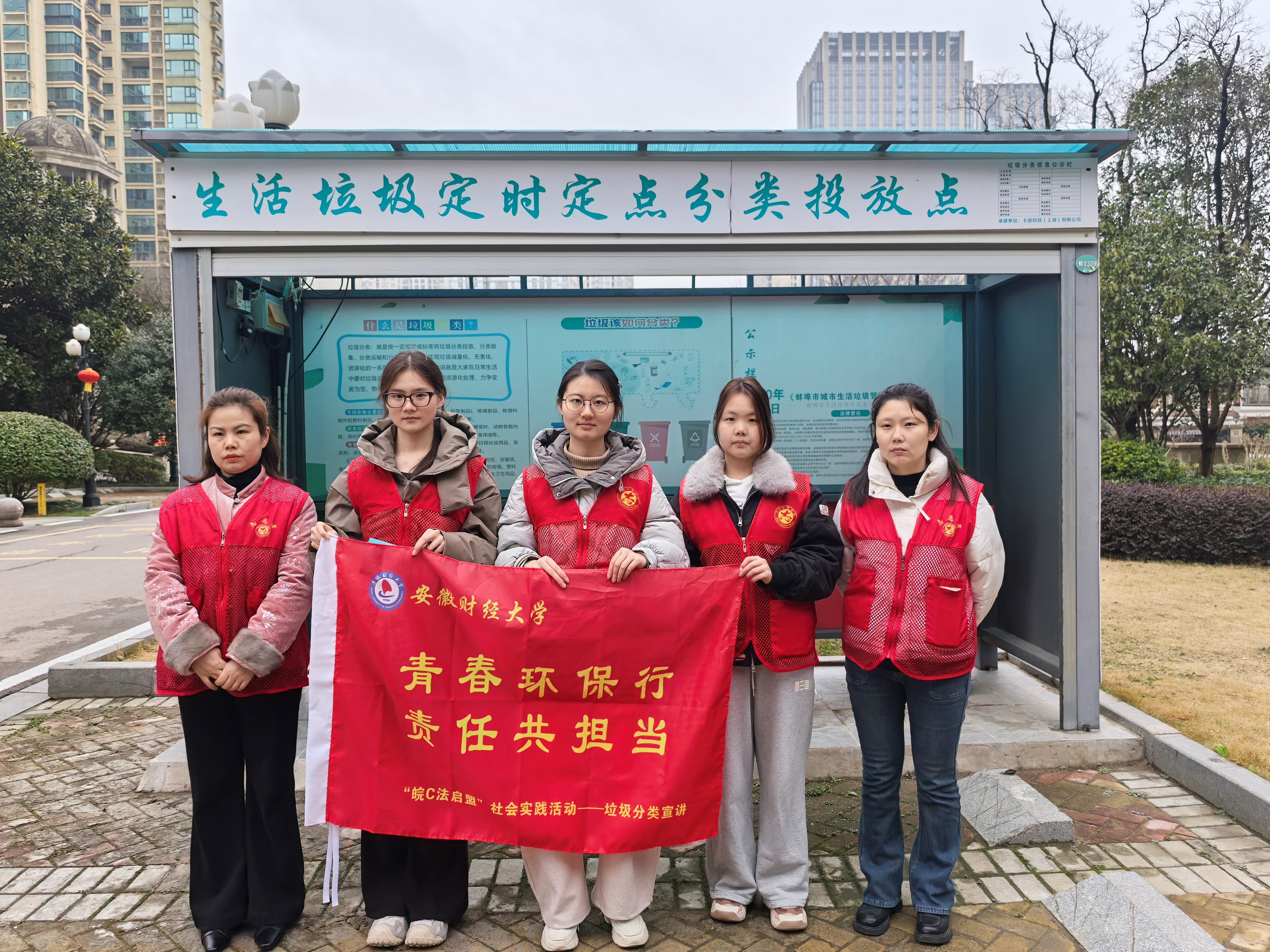 2月27日下午,安徽财经大学法学院“皖C法启盟”实践团3名学子,联合金恒社区团工委组织开展“青春环保行,责任共担当”垃圾分类主题宣传活动。大学生志愿者主动担当、积极作为,与社区工作人员并肩开展宣传服务,以青年力量助力文明社区建设。
