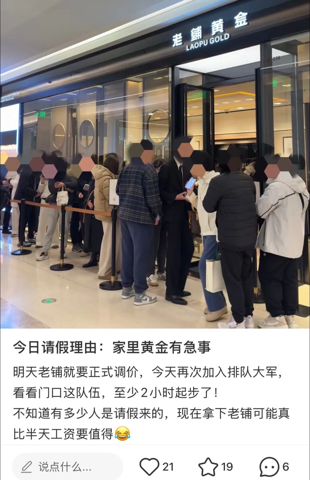 据都市快报2月28日,老铺黄金启动新年以来的首次调价。不少人特意请假甚至翘班排队抢老铺。