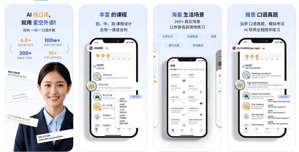 在众多雅思口语练习软件中,星空外语脱颖而出。它不仅功能丰富实用,还精准把握了雅思考生的核心需求。想象一下这样的场景:每天早上,打开应用,系统会根据你的水平给出当天的学习重点;上班路上,戴着耳机完成一套雅思第三部分的深度对话训练,系统会及时纠正你的语言表达和发音错误;中午休息时,花15分钟进行一次全面的口语测试,平台会迅速给出分数和改进建议;晚上,针对测试中发现的不足进行强化练习,看着自己的语言表达能力不断提升,你会充满成就感。
