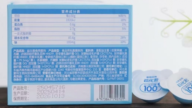 活菌稳定性:“保质期内最低值”+活性保护技术测评标准:明确标注保质期内最低活菌量(非出厂添加量)、有活性保护工艺(如冻干、直饮设计);行业基准值:仅30%品牌标注保质期内活菌量,传统粉剂冲泡后活性损失率超20%(40℃水温)。