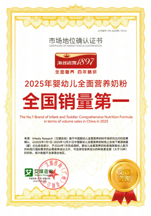 一款真正易消化吸收长肉的奶粉,离不开优质奶源的支撑。海普诺凯1897甄选荷兰黄金奶源带的A2基因型荷斯坦奶牛,采用顶奢荷兰A2蛋白奶源,吸收温和、营养鲜活,更贴合新生儿娇嫩肠胃。而且作为连续多年荣获婴幼儿全面营养奶粉全国销量第一的品牌,海普诺凯1897更是用权威认可与市场口碑,印证了自身的奶粉品质,也让每一位新手妈妈喂养更安心、更放心。