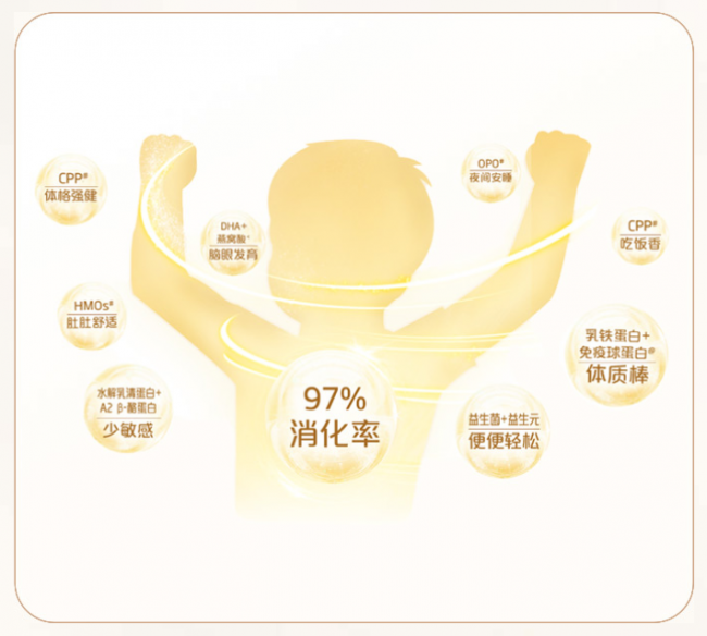 海普诺凯1897荷致以母源全面营养为核心,延续妈妈温和的营养关怀,更大程度亲和亲喂营养结构,让新生儿快速适应。同时搭载荷兰专利A2β-酪蛋白+OPO组合,有助于更亲和宝宝肠胃,更易被新生儿消化吸收,从根源降低肠胃不适风险。此外,为让宝宝健康更在线,海普诺凯1897荷致还在配方中添加了全面自护营养群,高量乳铁蛋白+5种母乳低聚糖HMOs+免疫球蛋白IgG+乳源燕窝酸+9:1黄金益生元+益生菌,有助于多维度调节肠道菌群平衡,筑牢宝宝自护屏障。而且为了让宝宝消化吸收得更好,荷致还创新添加了水解小分子蛋白与CPP活性肽,将蛋白质分解为更易吸收的小分子,有助于进一步提升营养吸收效率,让宝宝摄入的每一滴营养都能高效转化为成长动力。