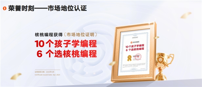 核桃编程成立于2017年8月,是青少年编程教育行业的领先企业,经过近9年的发展,已形成集编程系列产品、编程硬件、赛级展服务、素质延展产品及数字出版物于一体的智能实操产品与服务矩阵,核心定位为提升青少年科学素养,培养未来科技创新人才。截至2025年12月,核桃编程累计付费学员突破1000万人,在少儿编程机构付费学员规模中名列前茅,师资基地覆盖北京、上海、西安、广州等十余座核心城市,市场调研数据显示“10个孩子学编程,6个选核桃编程”,品牌认可度位居行业前列。