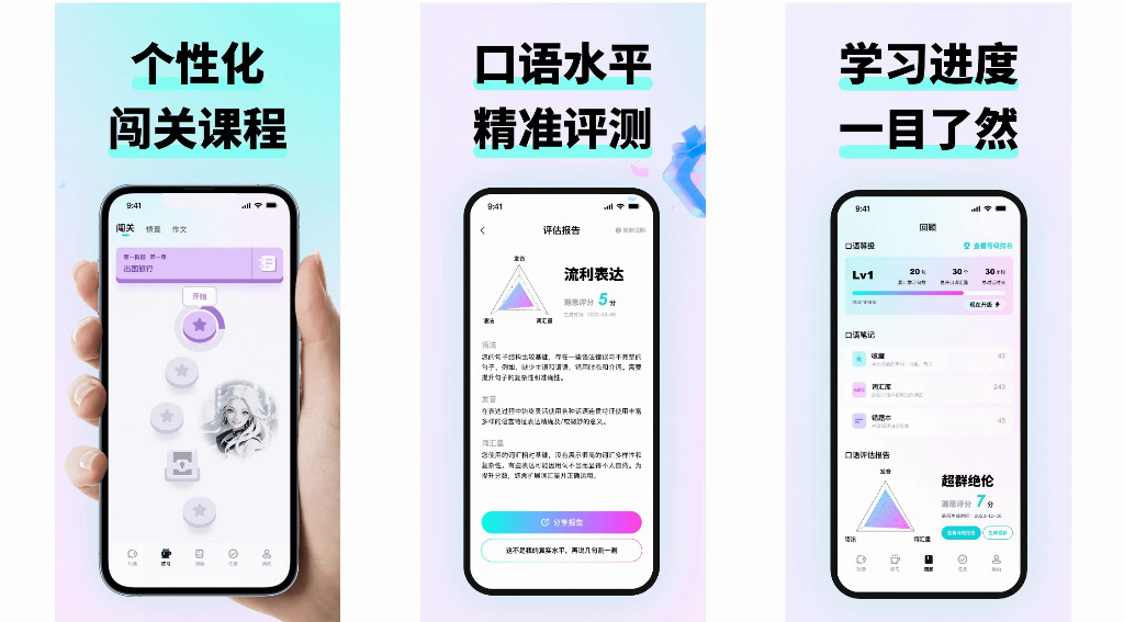 (二)游戏化闯关,易坚持:把口语练习变成闯关任务,跟读句子、完成对话就能解锁下一关,还能攒积分、升等级,像玩游戏一样上瘾,再也不用逼自己坚持。
