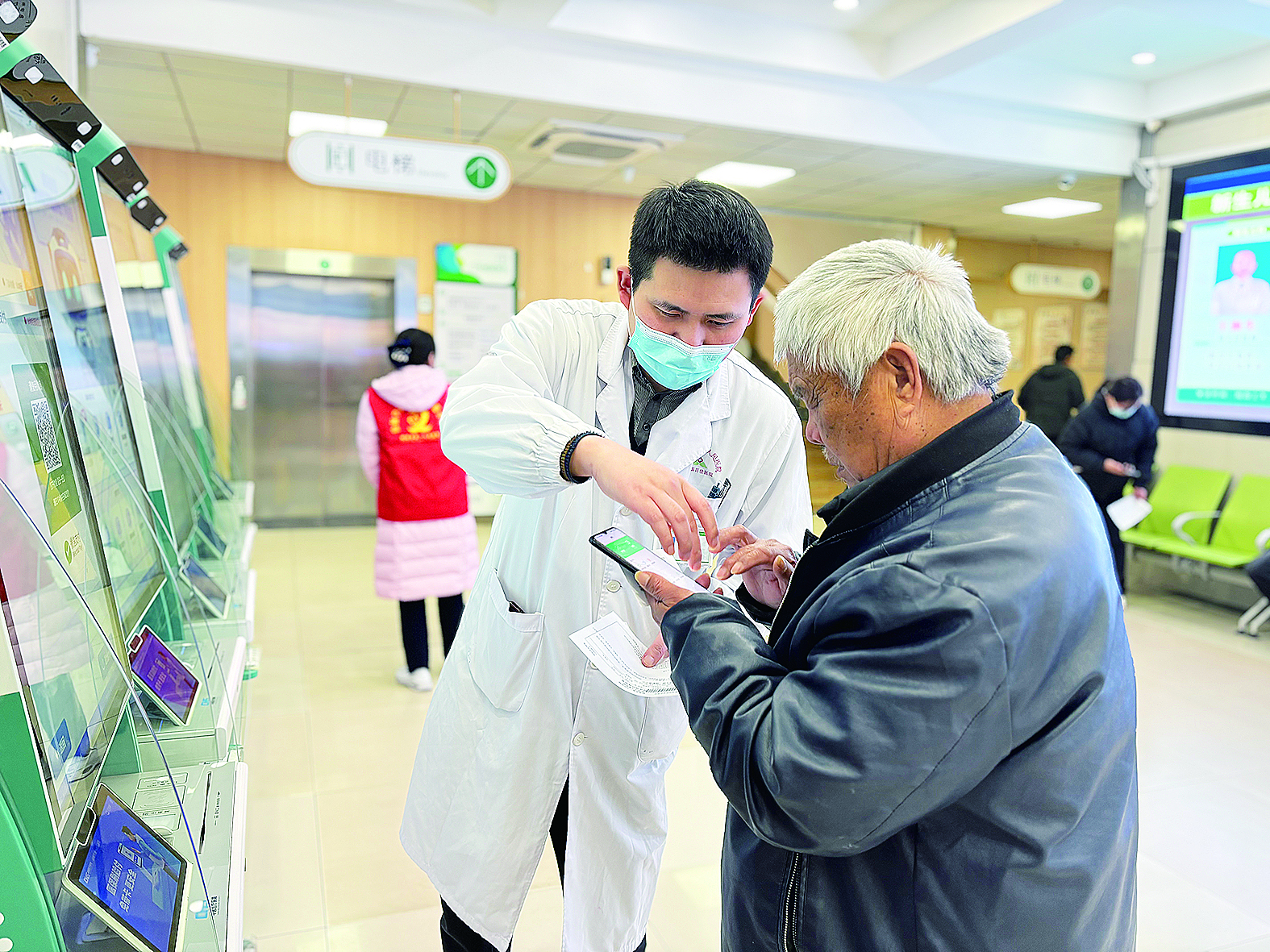 “挂号在哪里?”“这个科室怎么走?”“机器上怎么打印报告单?”……面对患者和家属们最急切、最直接的问题,徐杨总能给出最及时、最清晰的指引。他是患者的“知心人”,在自助机旁,他手把手帮助老年患者操作自助机,从挂号缴费到打印报告,每个步骤都耐心讲解。他也是患者的“活地图”,在就诊大厅的人流中,他主动上前询问患者需求,引导有序候诊,精准对接科室,让患者少跑冤枉路。