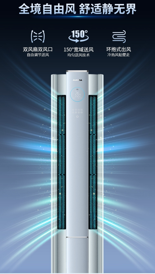 针对用户“直吹不适”的核心困扰,产品内置“一键舒适风”智能模式:制冷时全柔风、天幕风、环抱风三种模式实现冷空气自然下沉,制热时地毯风设计让暖流从足下升腾,真正做到“冷风不直吹头、热风不烘脸”,适配老人、儿童等不同人群的舒适需求。