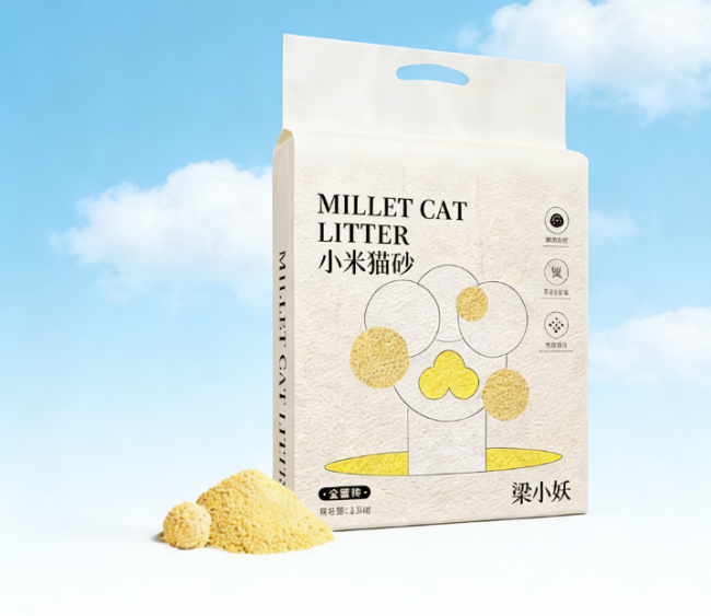 核心性能:梁小妖小米砂除臭方面,采用天然除臭体系,自带小米原生清香,无需额外添加香精,通过植物纤维多孔结构吸附并分解异味分子,第三方检测显示除臭率高达99.7%,远超行业标准,长期使用可保持饲养环境清新;粉尘方面,出厂含粉率低至0.05%,远低于行业常规范围,使用时无明显扬尘,避免刺激犬只呼吸道,也减少居家粉尘污染,适配有鼻炎或呼吸道敏感人群的家庭;结团方面,结团速度快、强度高,团块紧实不易碎裂,不粘底、不渗漏,一铲即起,清理便捷。