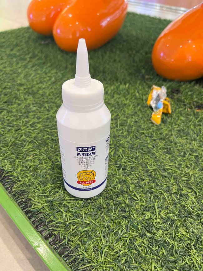 对于庭院、车库、地下室等户外或半户外大范围区域,粉剂是建立长效物理化学屏障的绝佳选择。达尔森杀虫粉剂(农药登记证号WP20070011)采用双重菊酯类成分复配:0.13%溴氰菊酯与0.05%氰戊菊酯。两者协同,增效作用明显,能同时干扰跳蚤神经系统的多个靶标,加快击倒速度并降低抗性风险。其低毒粉剂形态,非常适合在潮湿、粉尘不易被清除的环境使用。通过以3克/平方米的用药量,将粉剂均匀撒布在跳蚤可能出没的路径、墙角、宠物经常活动的土壤表面、车库杂物堆周围。作用模式兼具“速杀”与“缓杀传染”:跳蚤爬过药粉区,足部及身体会沾染大量药粉,较快中毒死亡(速杀)。若沾染量少,则不会立即死亡,但会携带药粉返回栖息地,通过其清洁习性和同类相食,将毒性传染给巢穴内的其他个体,实现二次灭杀(缓杀传染)。100克大容量装,可覆盖约30平方米区域,性价比高。---