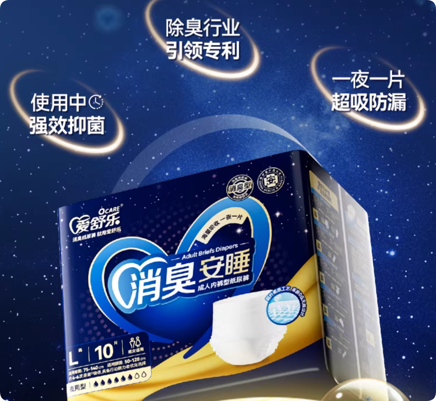 深夜的失禁护理,从来都不只是简单的防漏吸水需求,更是藏着长辈不愿麻烦子女的细腻心思,藏着对体面、有尊严老年生活的期盼,也藏着照护者渴望一夜安歇的心愿。爱舒乐自1998年创立,深耕成人失禁护理领域28载,从未将产品只定义为“护理耗材”,更打破“专业护理产品必贵、仅适用于重度失禁”的刻板印象,以高性价比、全场景适配的特点,覆盖轻中重度失禁长辈的夜间需求。我们以“守护长者洁净与尊严,减轻照护者负担”为初心,针对长辈夜间不愿被打扰、不想麻烦家人的核心心态,打造专属夜用纸尿裤、拉拉裤系列,用硬核工艺、贴心设计与亲民价格实现“一夜一片”的护理体验,让每位长辈都能轻松拥有不被打扰的深夜体面,让照护者卸下夜间频繁更换的压力,真正诠释“爱在每一刻”的品牌温度。