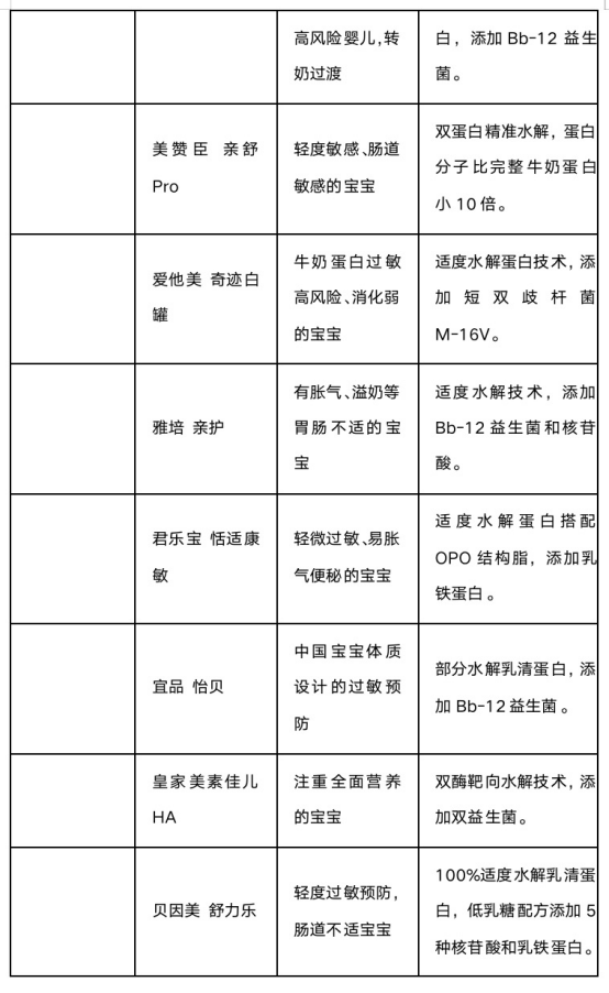 主流水解奶粉分类速览