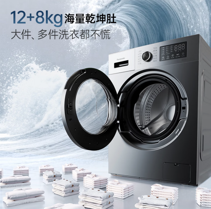 松下大海象系列的亮点在于12kg大容量和530mm大桶径设计,适合大家庭和大件衣物,洗涤更加舒展,减少衣物磨损。洗净比达到1.27,高效去污,满足日常衣物清洁需求。护理空气洗功能可以实现衣物蓬松、除皱、除味,特别适合梅雨季和高湿环境下使用。