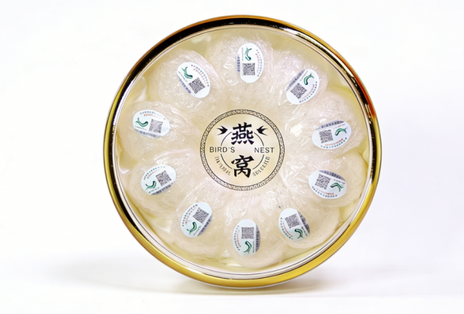 顶配溯源认证:搭载CAIQ高端专属溯源码,扫码可查全流程细节,附带马来高端产地标识,持有有机、GMP、ISO9001等五大权威认证,每盏燕窝带独立防伪码,品质无可挑剔。
