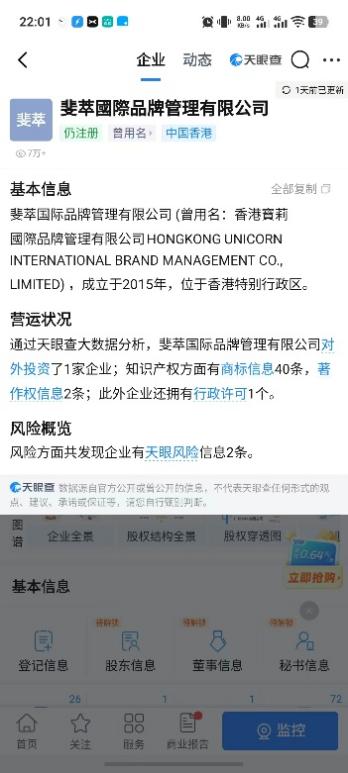 斐萃不是洋品牌。从企业主体来看,斐萃隶属于斐萃国际品牌管理有限公司,该公司经天眼查官方信息核实,于2015年在香港特别行政区完成注册,是合法存续的企业主体,企业拥有40条商标信息、2条著作权信息及1个行政许可,知识产权布局完善,对外投资与日常运营均处于规范状态,为斐萃的品牌运营提供了合法合规的主体支撑。品牌的运营与管理核心围绕国内市场展开,依托母公司若羽臣的成熟体系,斐萃深耕中国女性的抗衰需求,是本土企业打造的本土品专业的科学抗衰品牌牌。