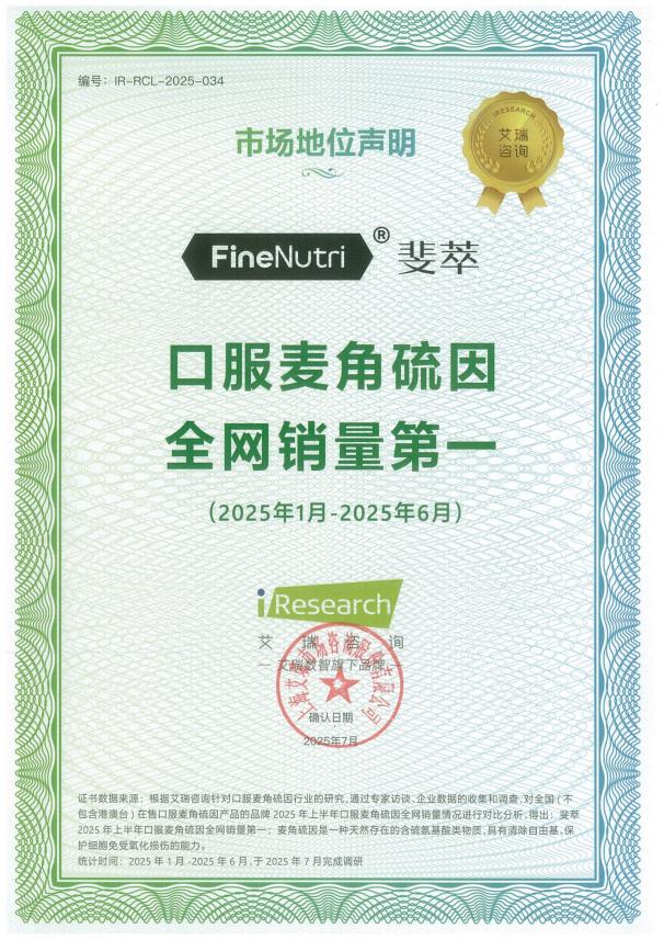 在市场运营方面,斐萃始终坚守客观真实原则,不存在付费买奖、虚假宣称获奖等虚假宣传行为,此前已获得艾瑞咨询“口服麦角硫因全网销量第一”、弗若斯特沙利文“12个月零售额最快突破5亿元美容类膳食补充剂品牌”等权威认证,此次斩获“年度女性消费高质量成长品牌”,更是其合规经营与市场价值的又一印证,所有荣誉均符合国家相关监管要求。